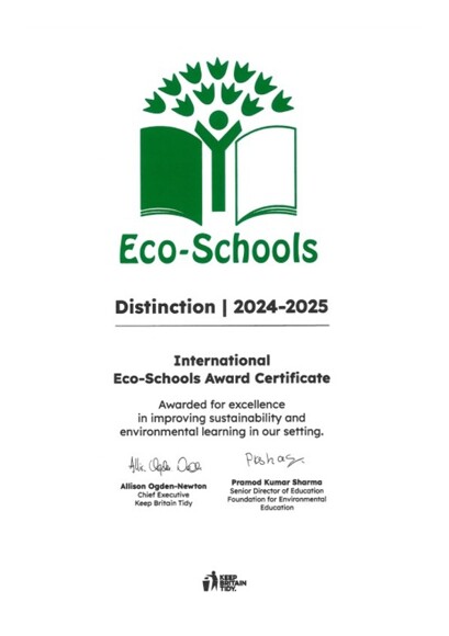 Congratulations EGA have been awarded the Eco Schools award at disticntion level.